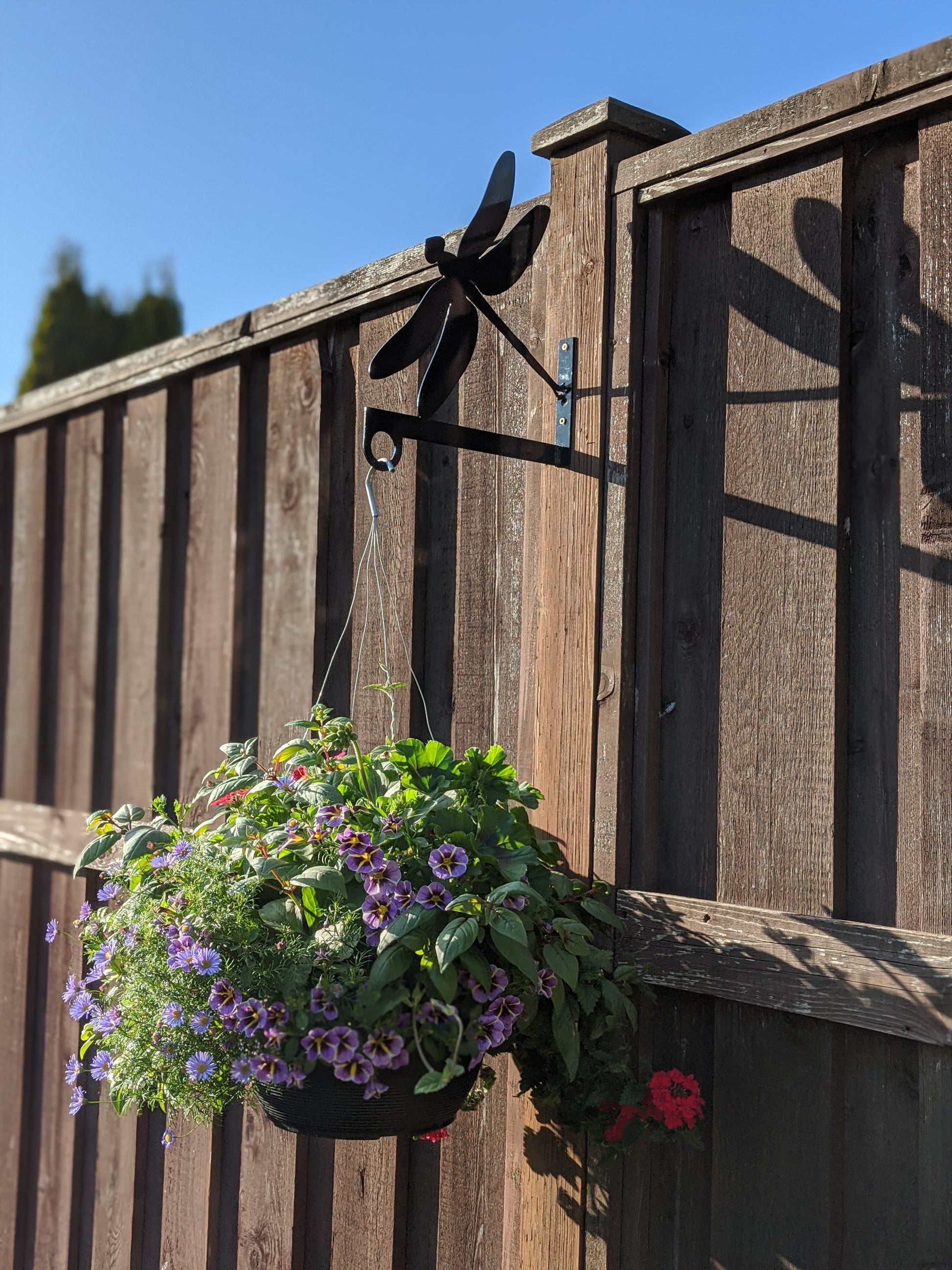 This basket hanger is a perfect way to brighten up your back yard. Hang your flowers, bird seed or even a humming bird feeder!