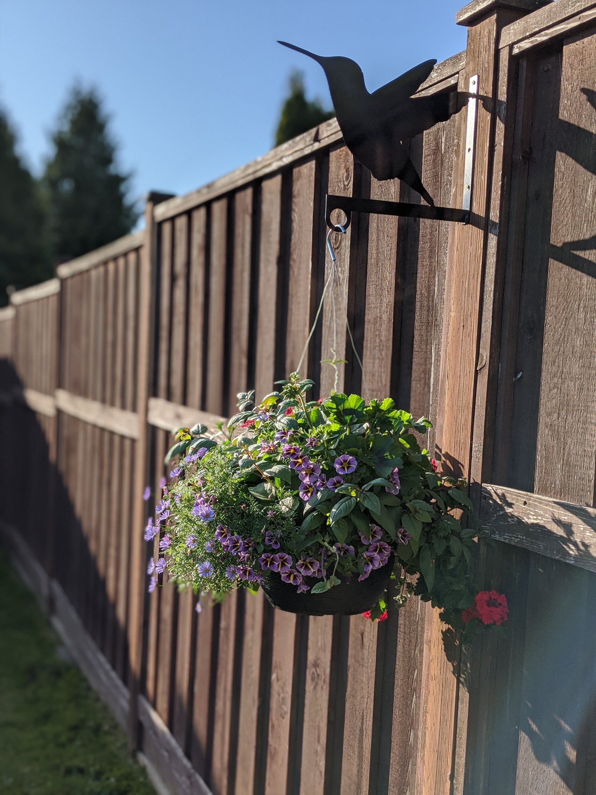 This basket hanger is a perfect way to brighten up your back yard. Hang your flowers, bird seed or even a humming bird feeder!