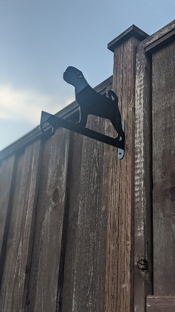 These are all 1/8th thick steel, powder coated gloss black and measures 1' from the mounting surface and 1' tall. These are built to hold any basket from your local garden center.