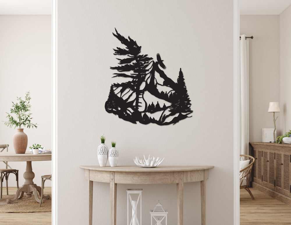 Enhance your home with our beautifully crafted metal mountain wall art. Made with exceptional steel and coated in elegant black powder, each piece brings a touch of nature and calmness to any space. With its minimalist style, it effortlessly blends with any interior design, creating a tranquil environment in your living room, bedroom, or office.